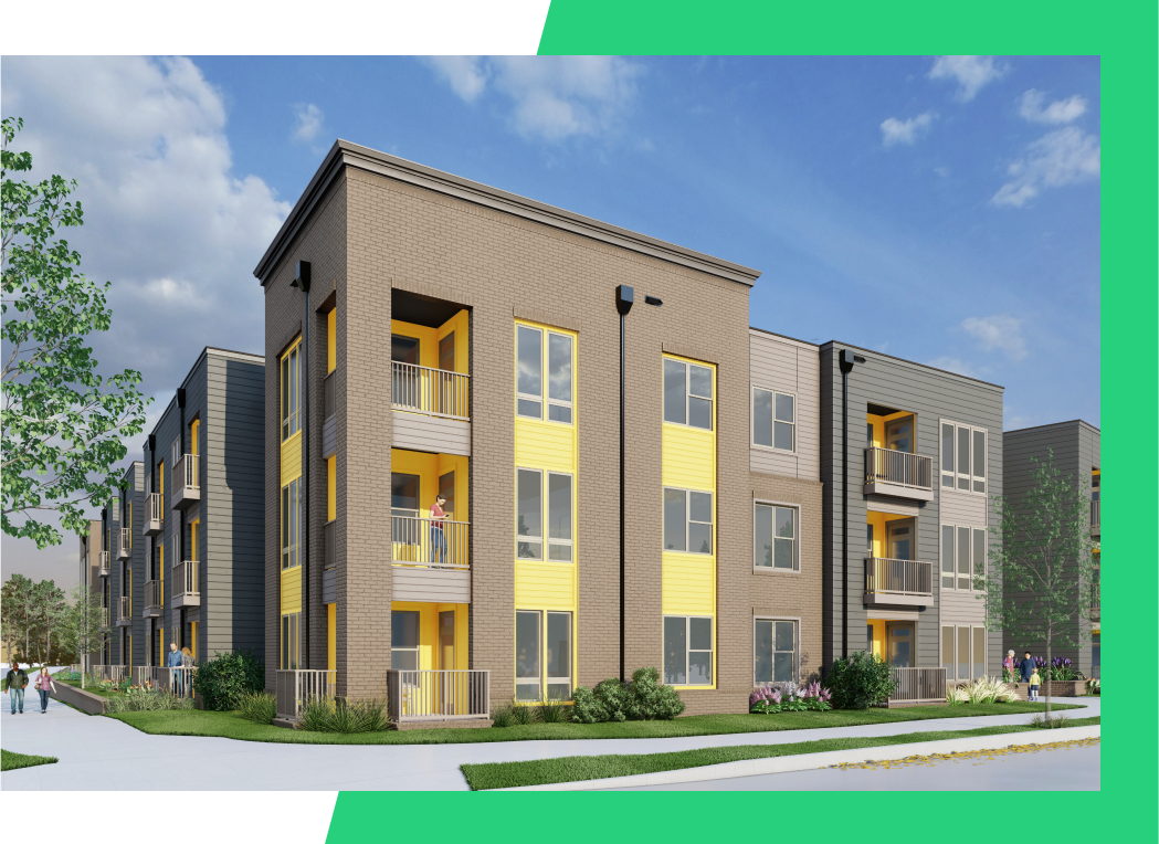 The project will ultimately preserve and develop 2,400 mixed-income units of housing to serve residents at various levels of area median income (AMI). The apartment complexes will offer bedroom sizes ranging from studios to threebedrooms. The first phase will develop 72 units of housing, 18 of which will serve renters at 30% AMI. The remaining units will rent at 60% or 80% AMI.